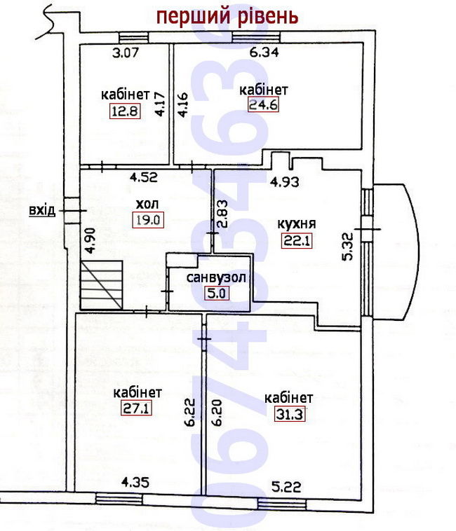 - просторные холлы, 7 отдельных кабинетов, оборудованная кухня, 2 санузла, кладовая;